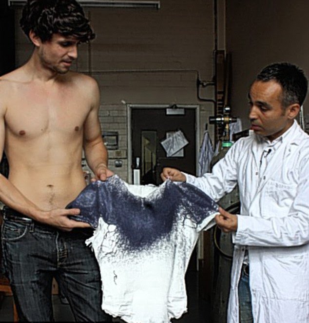 Aquí les dejo un video demostrativo de cómo funciona, se rocía un azul sobre la camiseta blanca a un modelo en poco menos de 15 minutos.