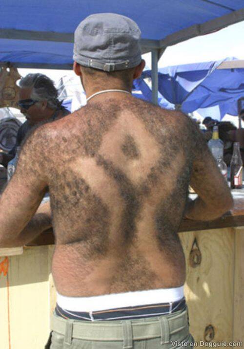 En muchas ocasiones he visto a hombres llenos de pelos en la espalda y pecho pareciendo que llevaban camisetas. Esta vez os presento esas camisetas de pelos hechas arte de la mano de hombres sin complejos y con mucha imaginación: