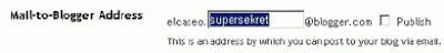 Para crear una entrada en su blog por correo electrónico, debe configurar su dirección de Mail-to-Blogger en Opciones | Correo electrónico: