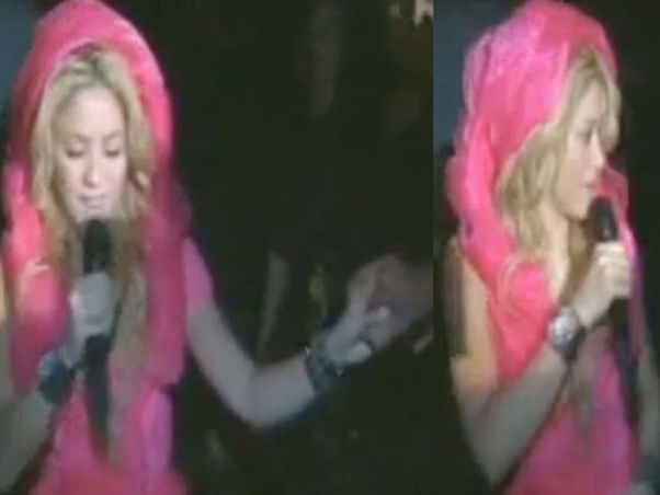 Gracias a las imágenes se puede ver cómo una persona del público toma la mano de Shakira cuando la cantante saludaba a sus fans.